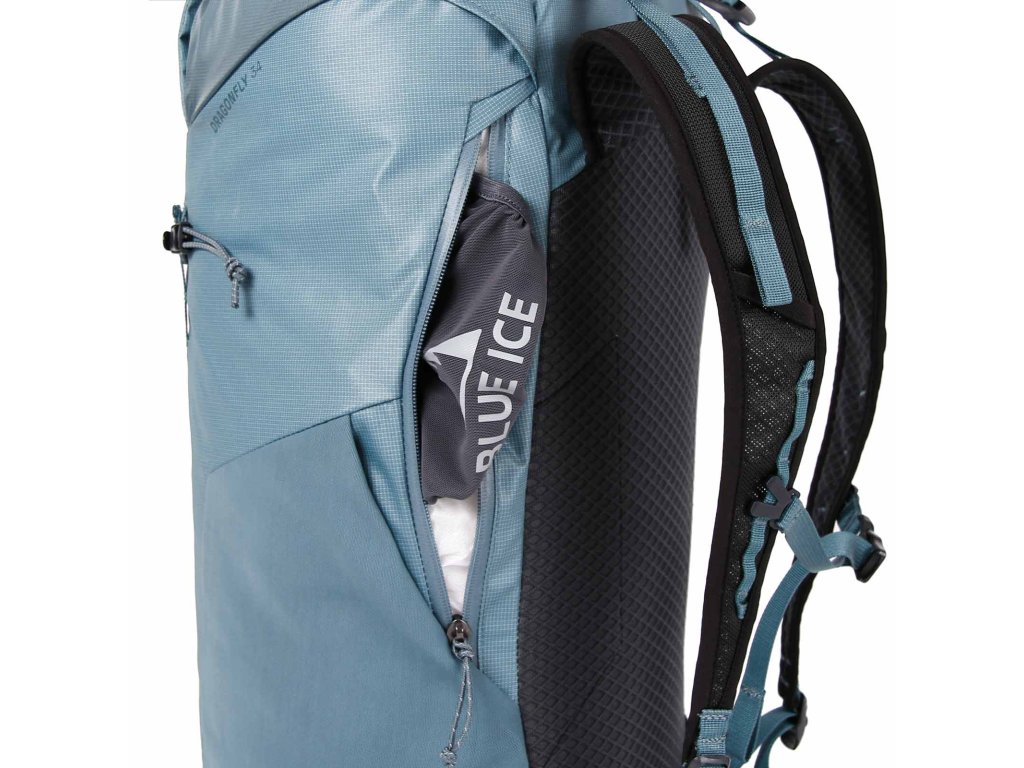 Blue Ice vyrábí tyto skvělé batohy i v objemu 18 a 26l, oproti nim má Dragonfly kromě většího objemu propracovanější zádový systém a boční vstup pomocí voděodolnému zipu.