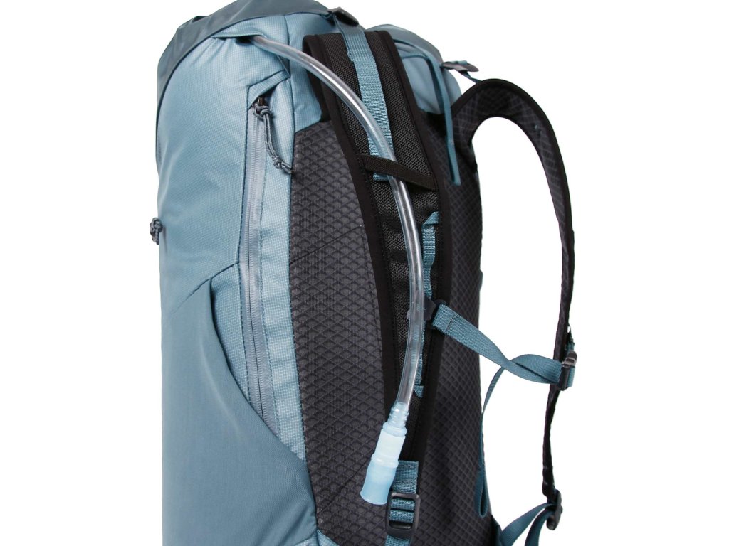 Další výbava: kapsa na hydrovak, skvělý systém uchycení cepínů, odnímatelný bederní pás, systém pro přenos lana, asymetrické stretchové kapsy dosažitelné i za pohybu, boční vstup pomocí vodoodolného zipu, kompatibilita s nosičem přilby