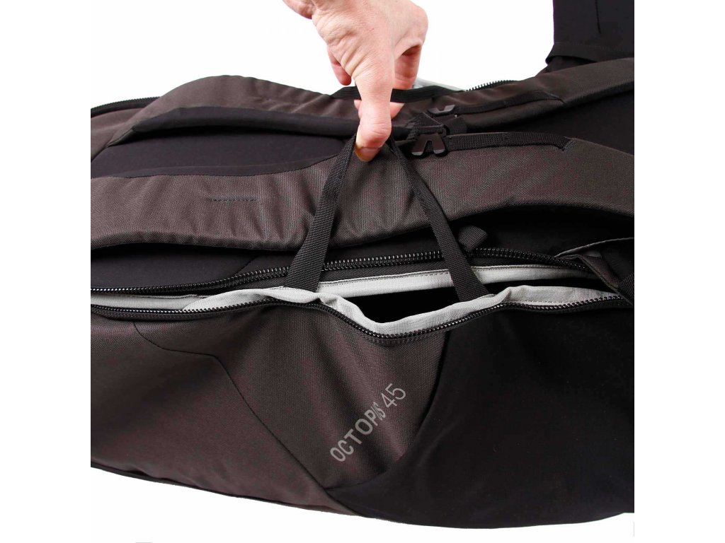 Velmi funkční, nabízí mnoho funkcí speciálně navržených pro zkušené lezce (otevírání celých zad, důmyslná plachta na lano umožňující snadné a rychlé sbalení a přenášení lana mezi cestami, vyhrazená přihrádka na lezečky, vnější boční kapsy na zip a síťované kapsy, poutka na vybavení ...).