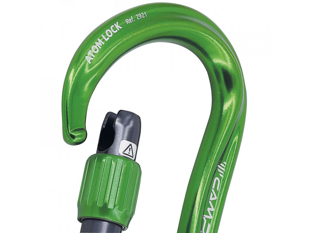 Atom Lock je velká HMS karabina určená k jištění a slaňování. Atom Lock je opatřena patentovanou úpravou SphereLock, která přesným výbrusem nosu a zámku karabiny zvyšuje pevnost při zatížení. Díky velké světlosti karabiny je práce s lanem snadnější. Nově upravená šroubovací pojistka zámku zaručuje optimální skluz závitu pro tu nejjednodušší manipulaci jednou rukou. Pro zvýšení bezpečnosti je zámek karabiny opatřen laserovým výbrusem, který značí, je-li pojistka zámku dostatečně zašroubována.