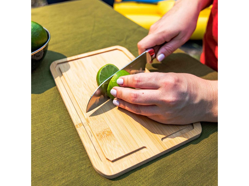 Bambusové prkýnko pro kuchařské nadšence. Rakau Cutting Board je vybaveno obvodovým kanálkem, díky kterému nepřijdete o drahocenou šťávu z ovoce nebo masa. Celkový rozměr prkýnka je 400 × 230 × 10 mm.