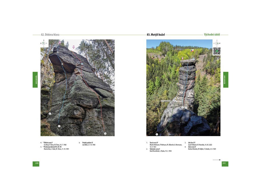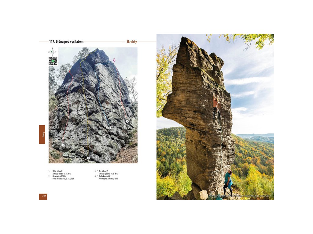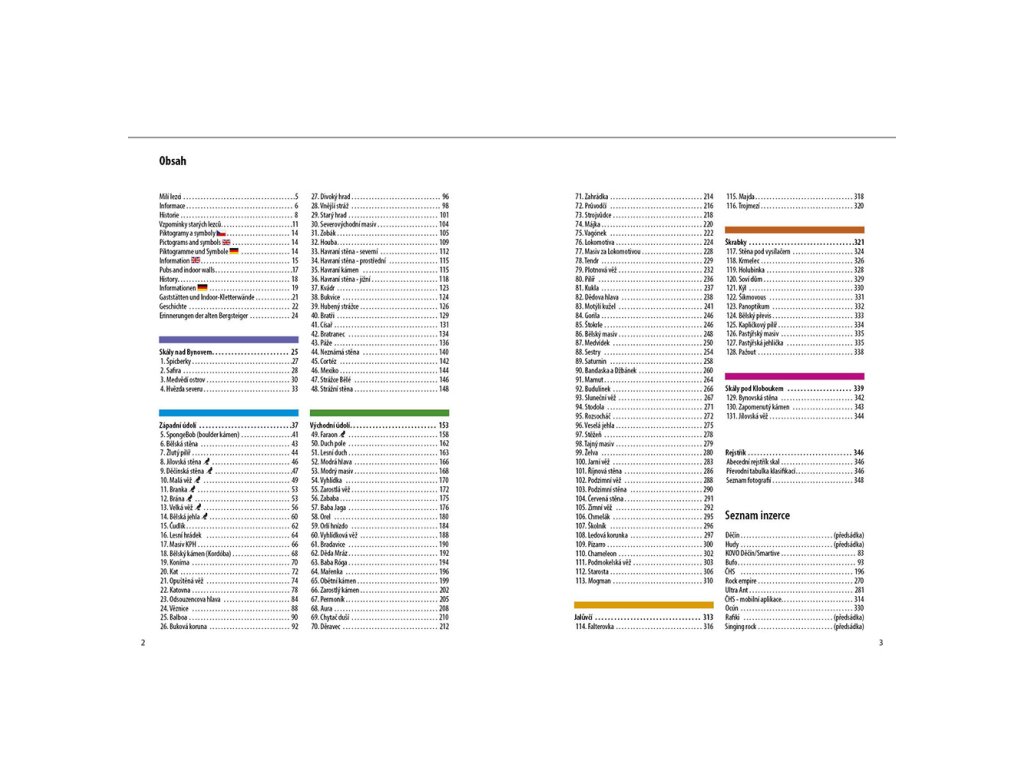 Jan Krejcar v něm zpracoval přes 1000 cest na 131 masívech a věžích. Nechybí ani cesty sportovnějšího rázu. Průvodce je rozdělen na pět podsektorů, kdy u každého na úvod naleznete potřebné informace o jaké skály se jedná, jaké je tam lezení nebo i informaci o případném parkování. Každá skála má svou fotku s popisy jednotlivých cest.