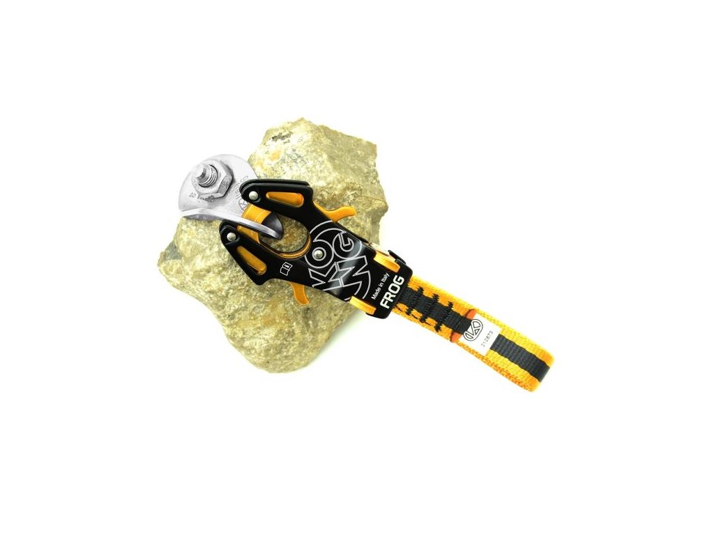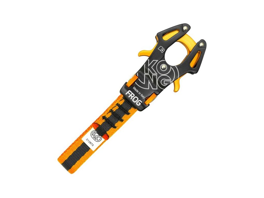 KONG Frog je výsledkem inovace, kterou ocení každý, kdo se pohybuje na stěně, ve skalách nebo pracuje ve výškách. Díky automatickému zapínání, které se aktivuje při dotyku kotevního bodu, odpadá tradiční manipulace s karabinou – žádné šroubování nebo manuální zavírání.