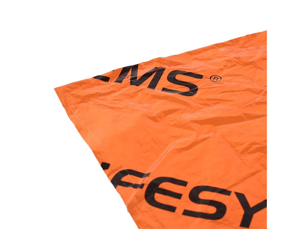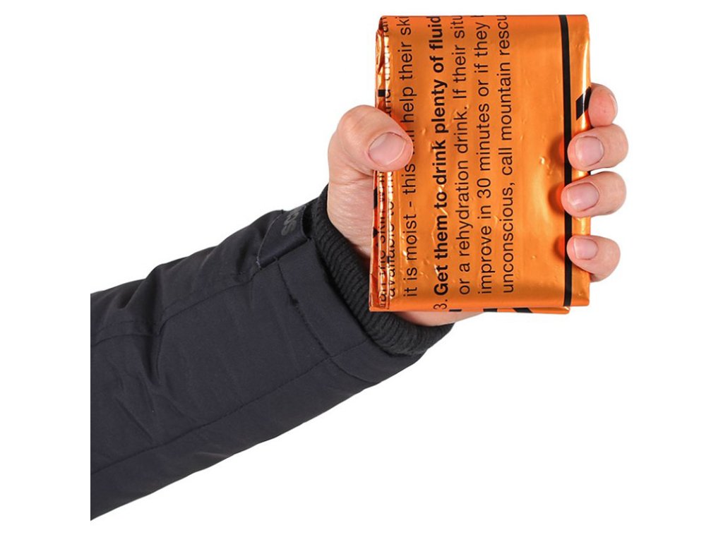 Heatshield Blanket Double je nouzová, odolná a skladná fólie pro 2 osoby, která pomůže udržet tělesnou teplotu v případě úrazu nebo při rychlém zhoršení počasí. Je vyrobena z pokoveného odolného polyethylenu, který odráží zpátky 90% vyzařovaného tělesného tepla. Fólie je nepromokavá, větruodolná a odráží radarové vlny. Díky své pevnosti je možné ji použít opakovaně.