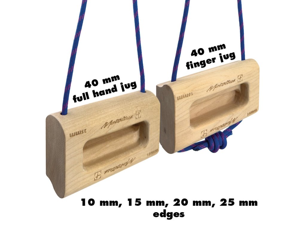 - Hloubka hran: 10 mm, 15 mm, 20 mm, 25 mm + 40 mm finger jug a 40 mm full hand jug