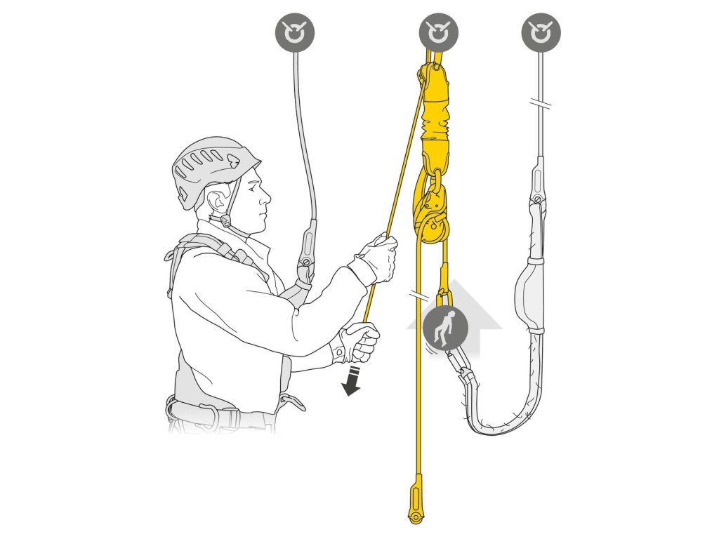 - Nadzvednutí a uvolnění pomocí zkompletovaného vytahovacího kladkostroje JAG SYSTEM, jehož mechanický poměr 4: 1 a vynikající účinnost kladky umožňují, aby se úsilí obsluhy při zvedání postiženého dělilo čtyřmi