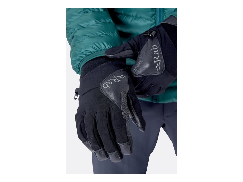 Prvních pár set metrů tebou ještě otřásá zima. Ale jakmile se dostaneš do tempa, zahřeješ se. Od úst stoupají k nebi jemné obláčky páry, špičky lyží se bez ustání předhánějí a paže kmitají ve svižném tempu. Ve skialpových rukavicích Rab Velocity Guide svíráš hole jistým úchopem, definovaným odolnou kozí kůži na dlani. Strečová a větruvzdorná tkanina Matrix je pro nevyzpytatelné horské podmínky vybavena také vodoodpudivou úpravou, proto tě do prstů jen tak nezábne. Ani když svižné tempo zmírníš do krátké pauzy, ve které pořídíš pár nezbytných záběrů hor nebo zkontroluješ správnost nastoleného směru. I proto má ukazováček a palec vodivý potisk, který si rozumí s displejem chytrého telefonu.