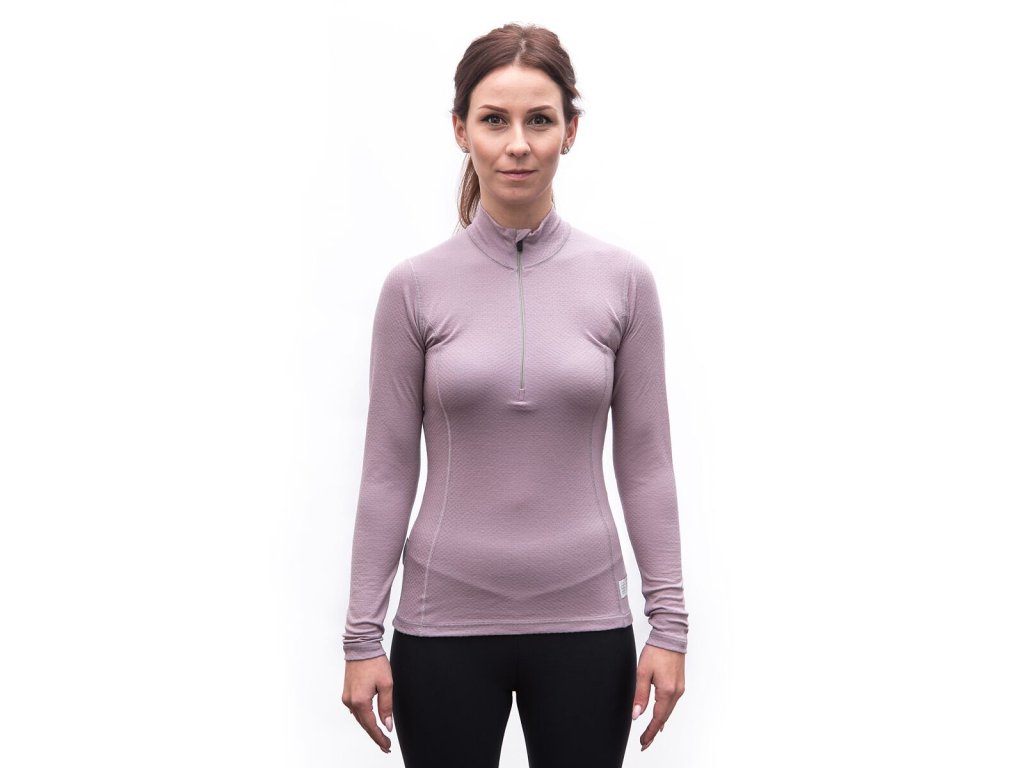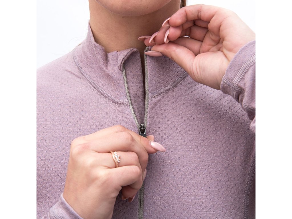 SENSOR MERINO DF dámské triko dl.rukáv zip mystic violet