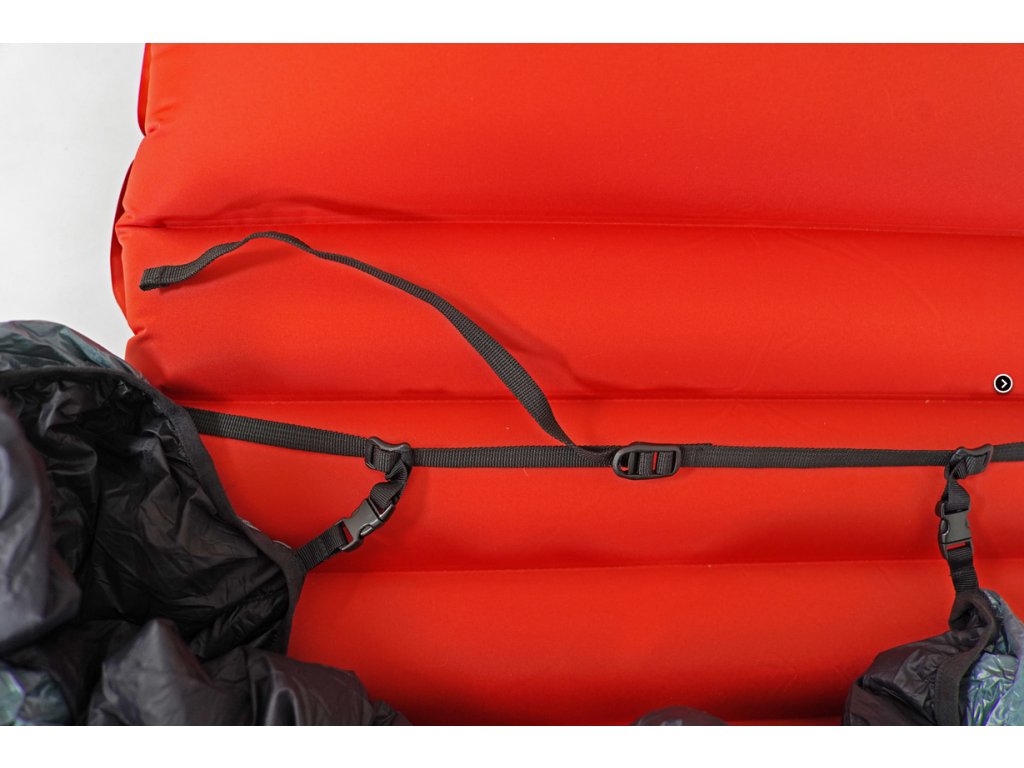 - Součástí jsou dva ploché popruhy opatřené posuvnými přezkami k uchycení quiltu ke karimatce